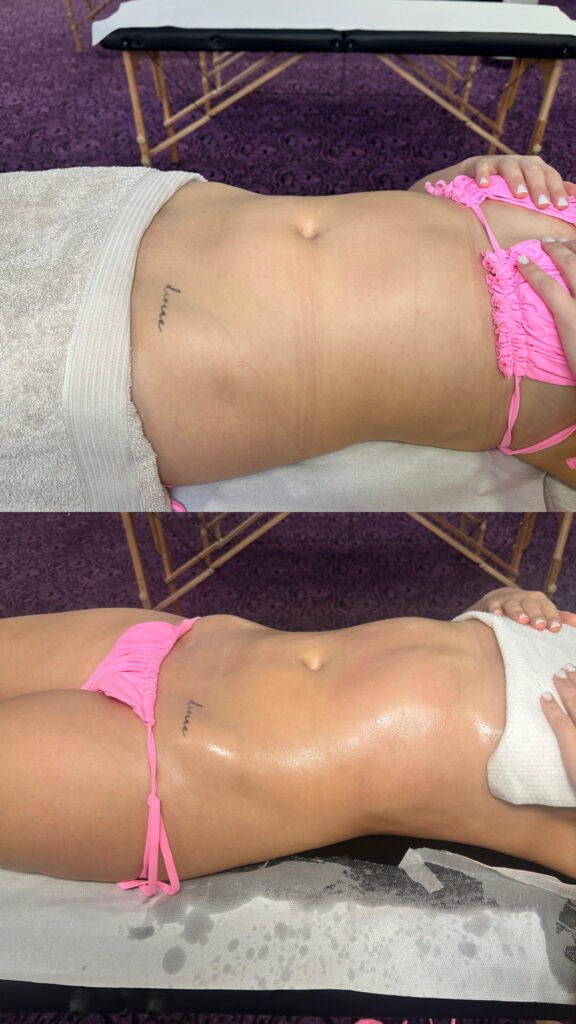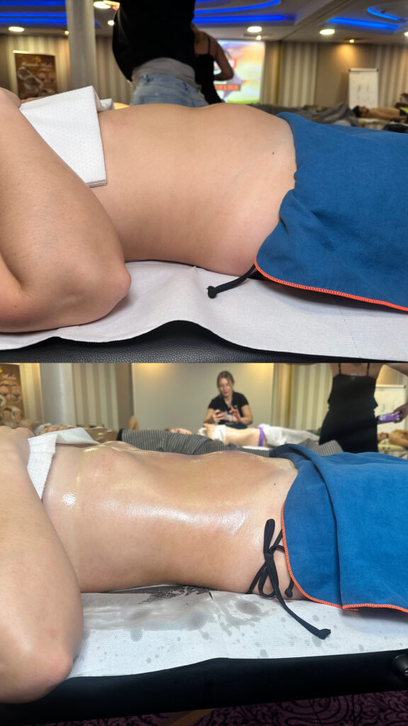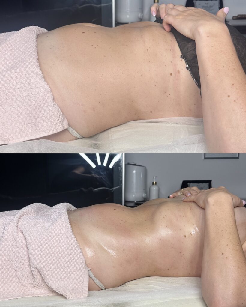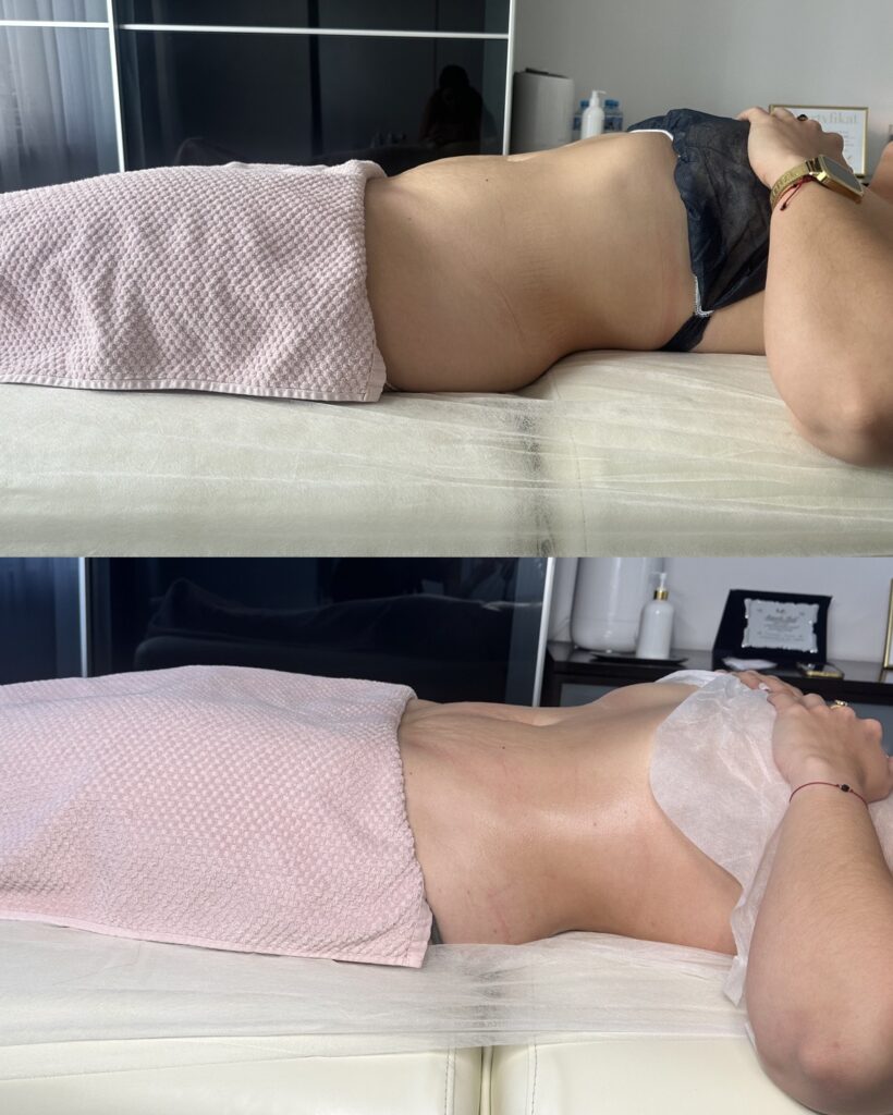 • Długoterminowe efekty: po serii zabiegów – widoczne wysmuklenie talii, ud i brzucha, wygładzona skóra i zredukowany cellulit